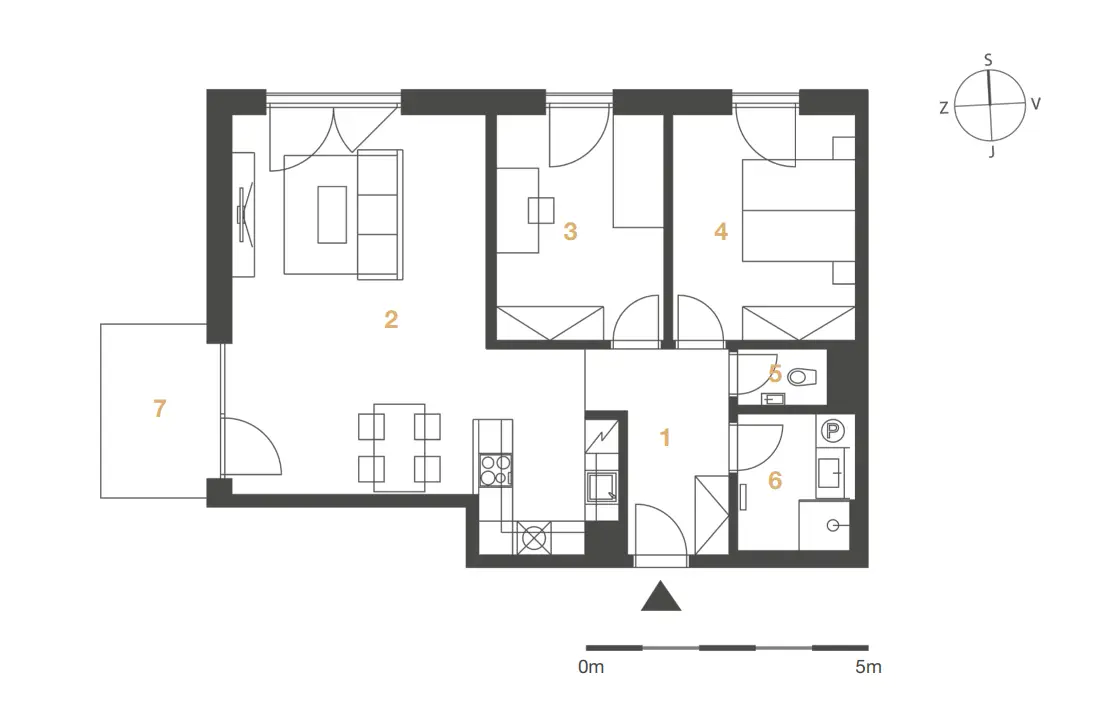 - Obývací pokoj + kk 38,5 m2